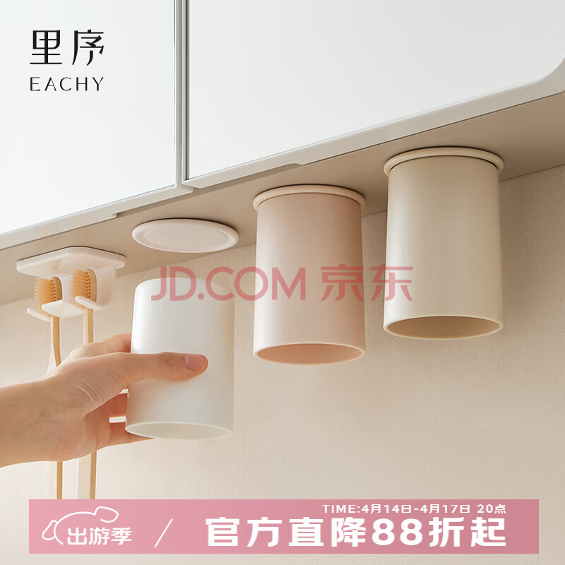 EACHY磁吸漱口杯子牙刷置物架壁挂免打孔卫生间家庭磁吸洗漱杯-卡其(10.6元)