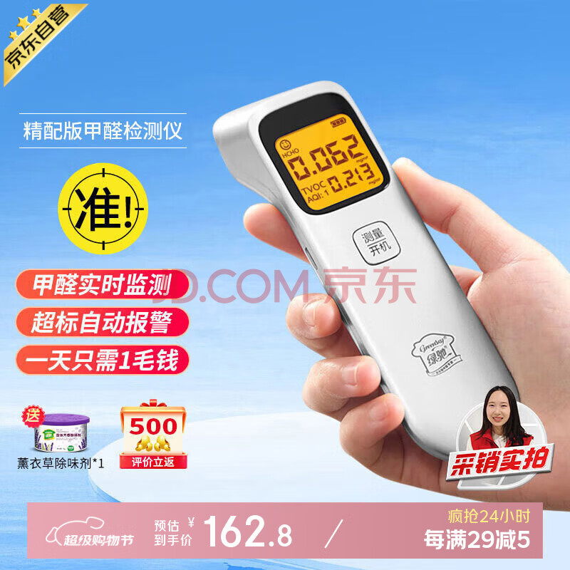绿驰专业测甲醛检测仪器家用 便携TVOC空气质量检测仪cma甲醛测试盒(162.8元)