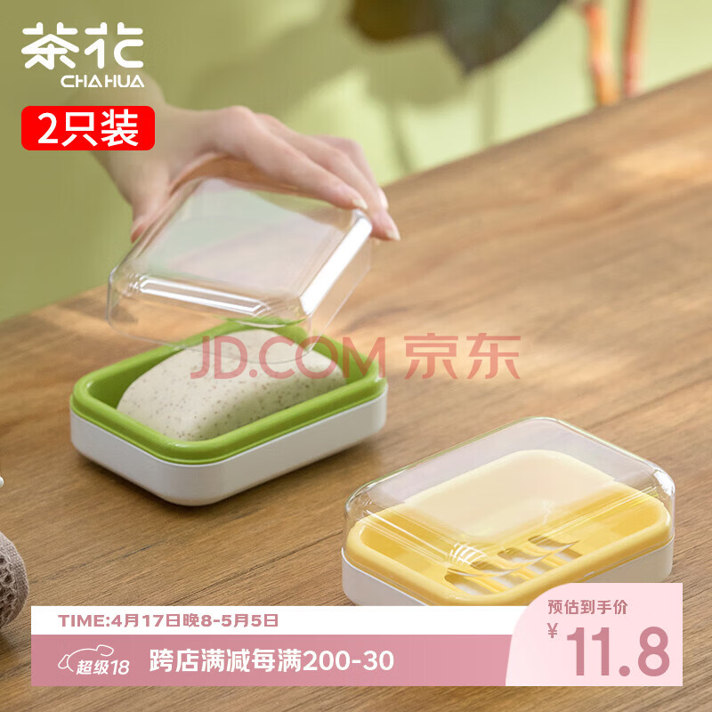 茶花肥皂盒香皂盒创意沥水免打孔带盖浴室洗衣皂盒皂架随机颜色 2只(11.26元)
